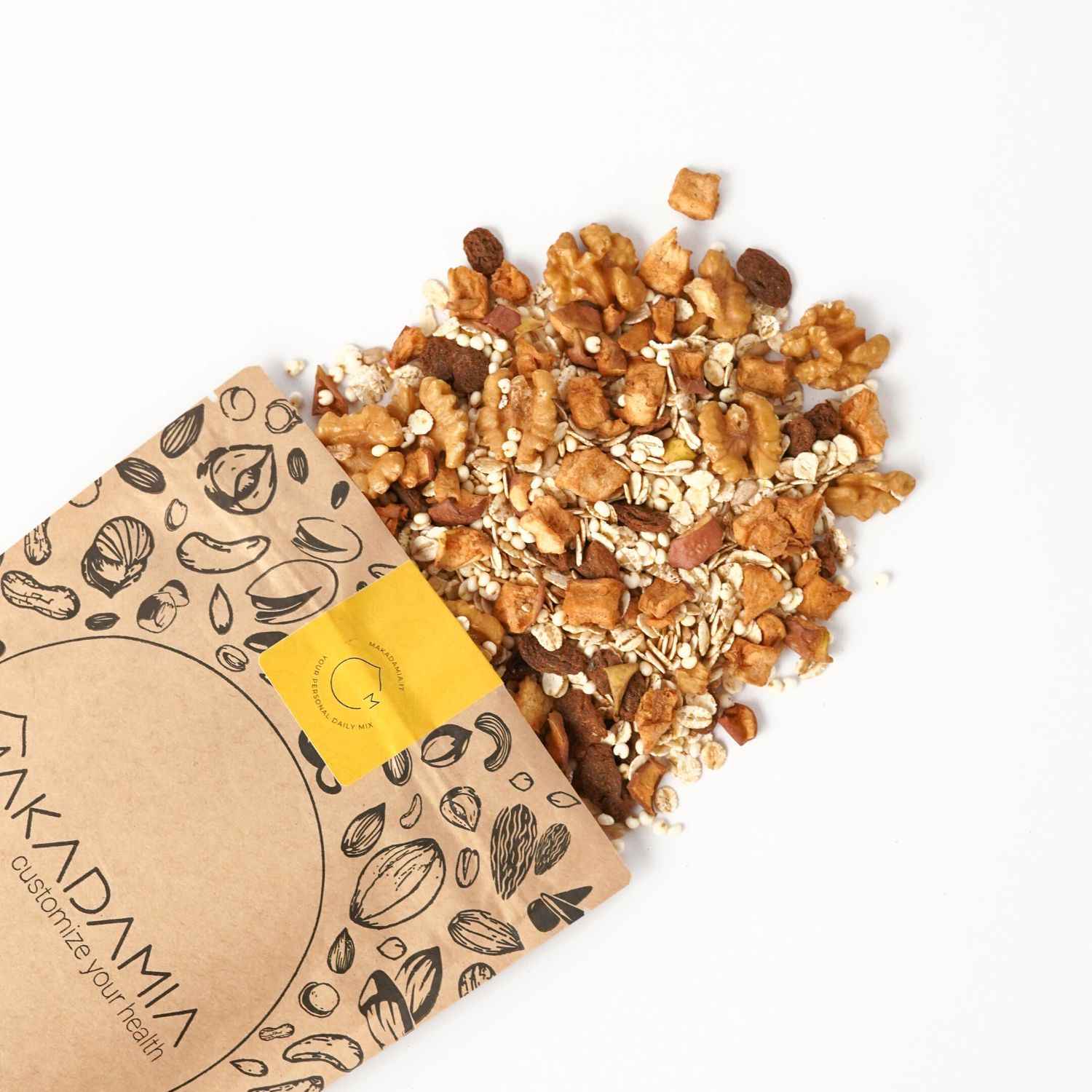 Das Knackige an dieser Mischung sind die Nüsse, die die perfekte Dosis an Mineralien, Proteinen und guten Fetten für den Start in den Tag liefern.