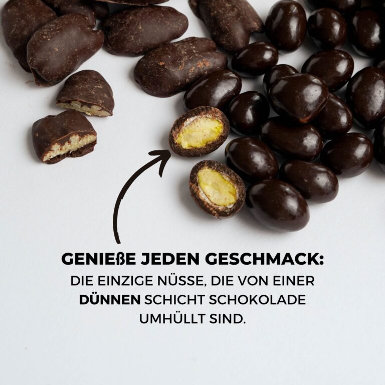 Hast du schon einmal geröstete Pistazien probiert? Wie wäre es mit Pistazien mit Schokoladenüberzug?