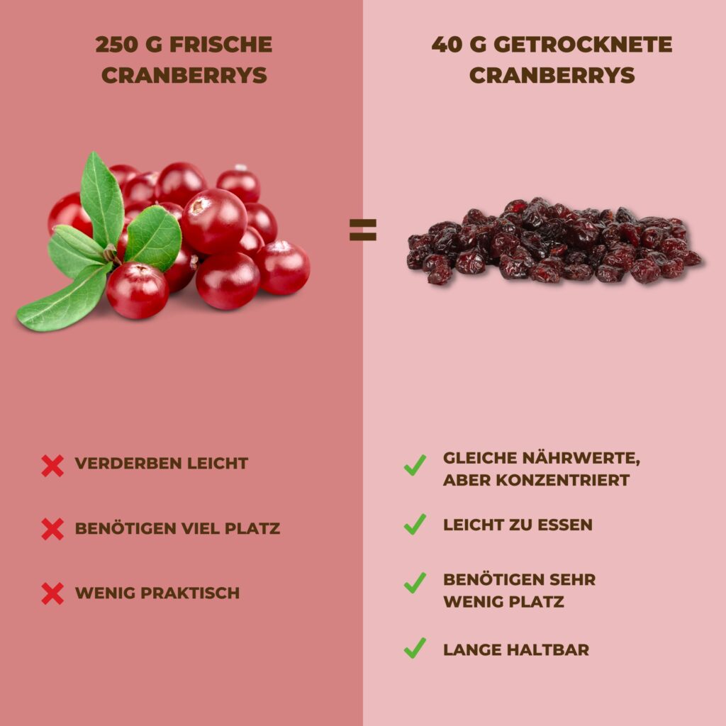Kaufe unsere getrockneten Cranberrys online und genieße sie, wo und wann immer du willst.