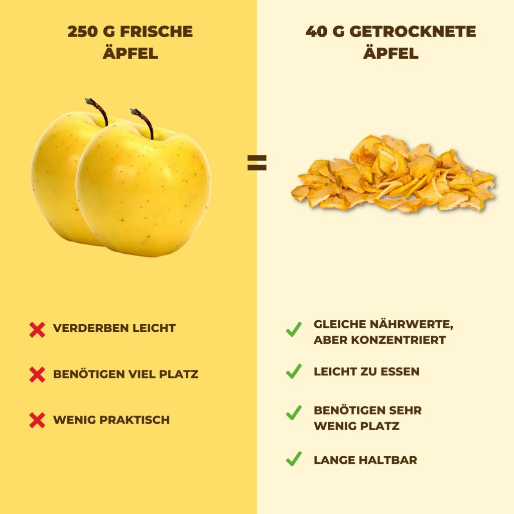 Kaufe unsere getrockneten Äpfel online und genieße einen Snack mit allen Eigenschaften von frischem Obst, aber in einem praktischen und nährstoffreichen Format.