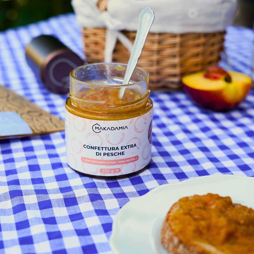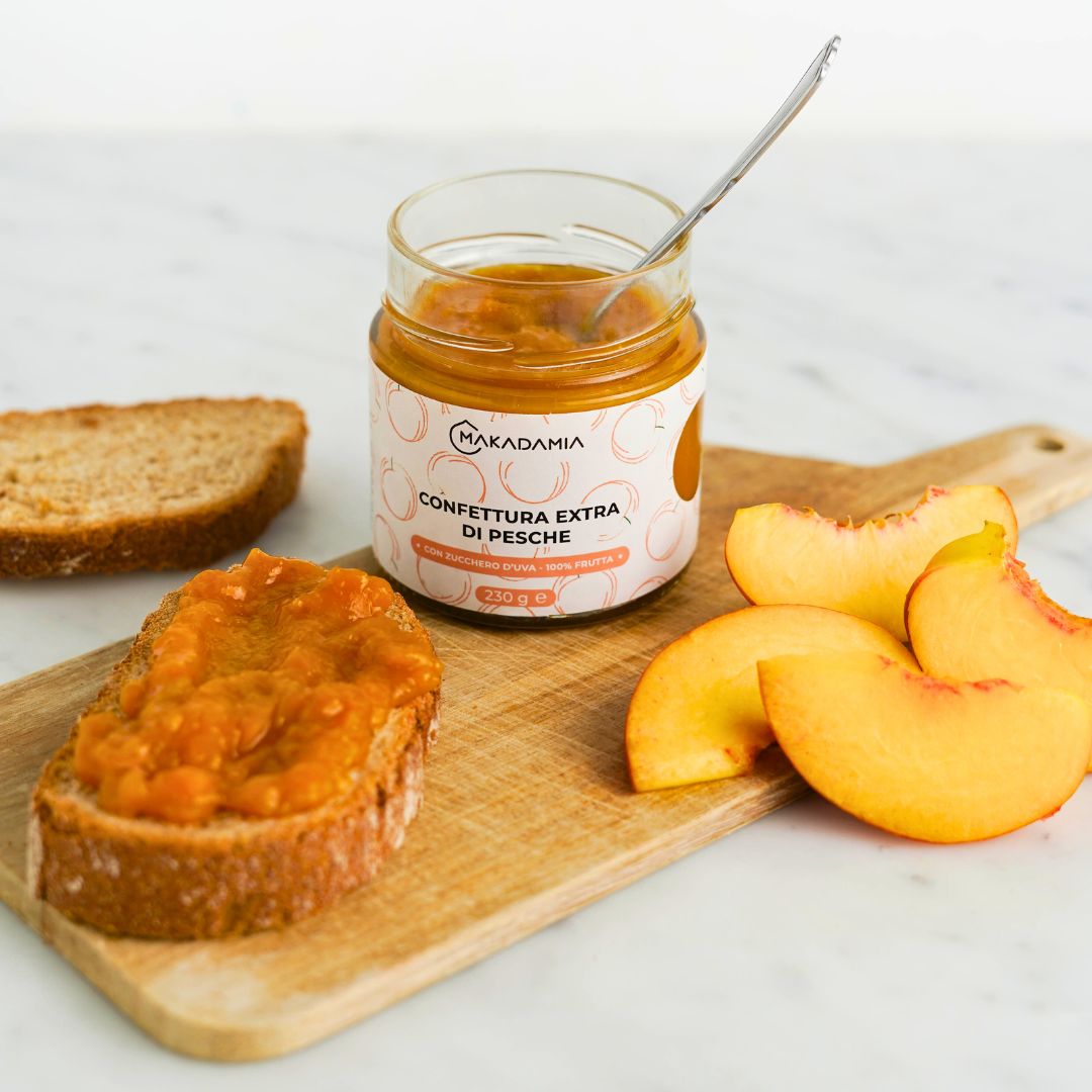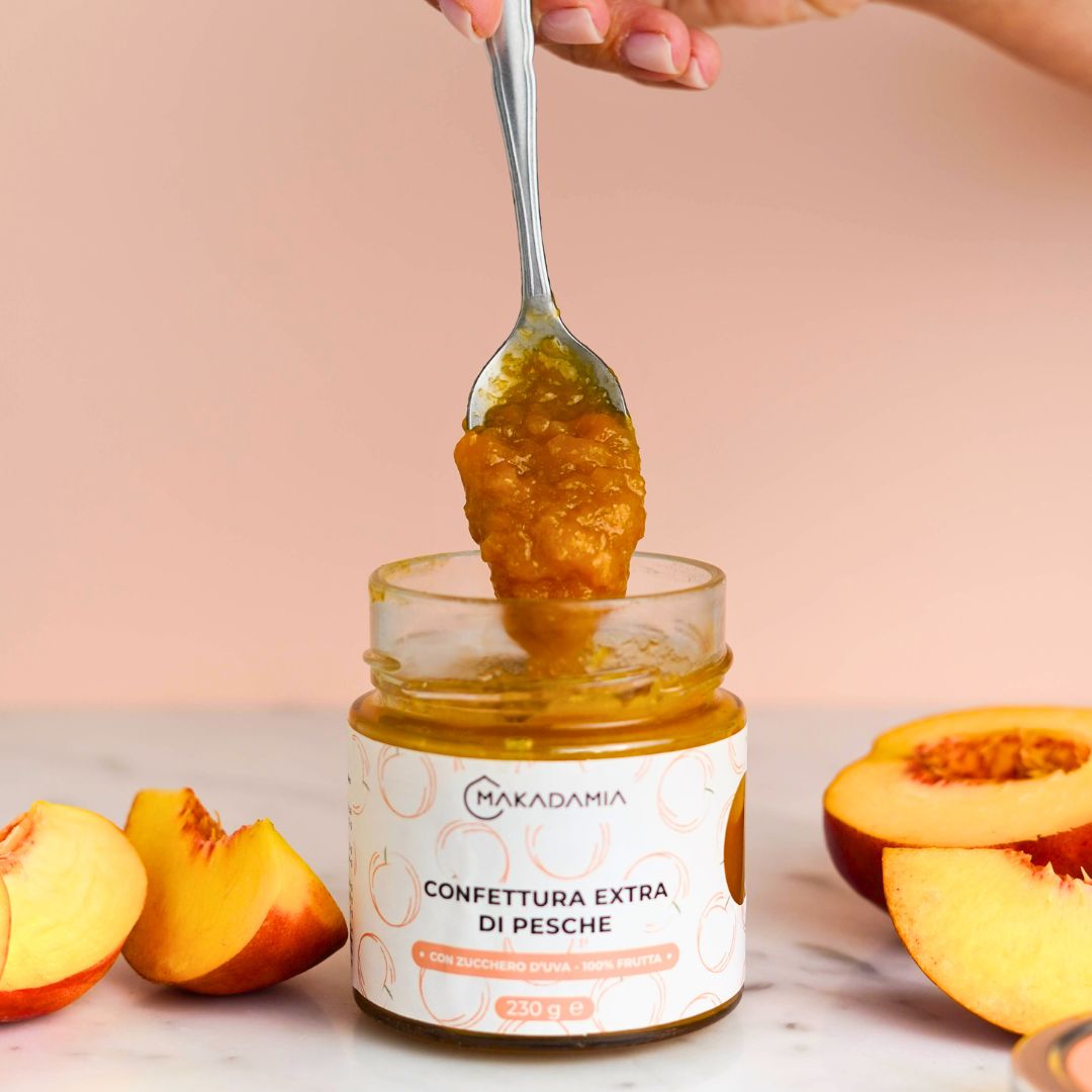 Zwei Zutaten, handwerklich hergestellt und rein italienisch: das ist die Rezeptur unserer Konfitüre Extra 79% Pfirsiche.
