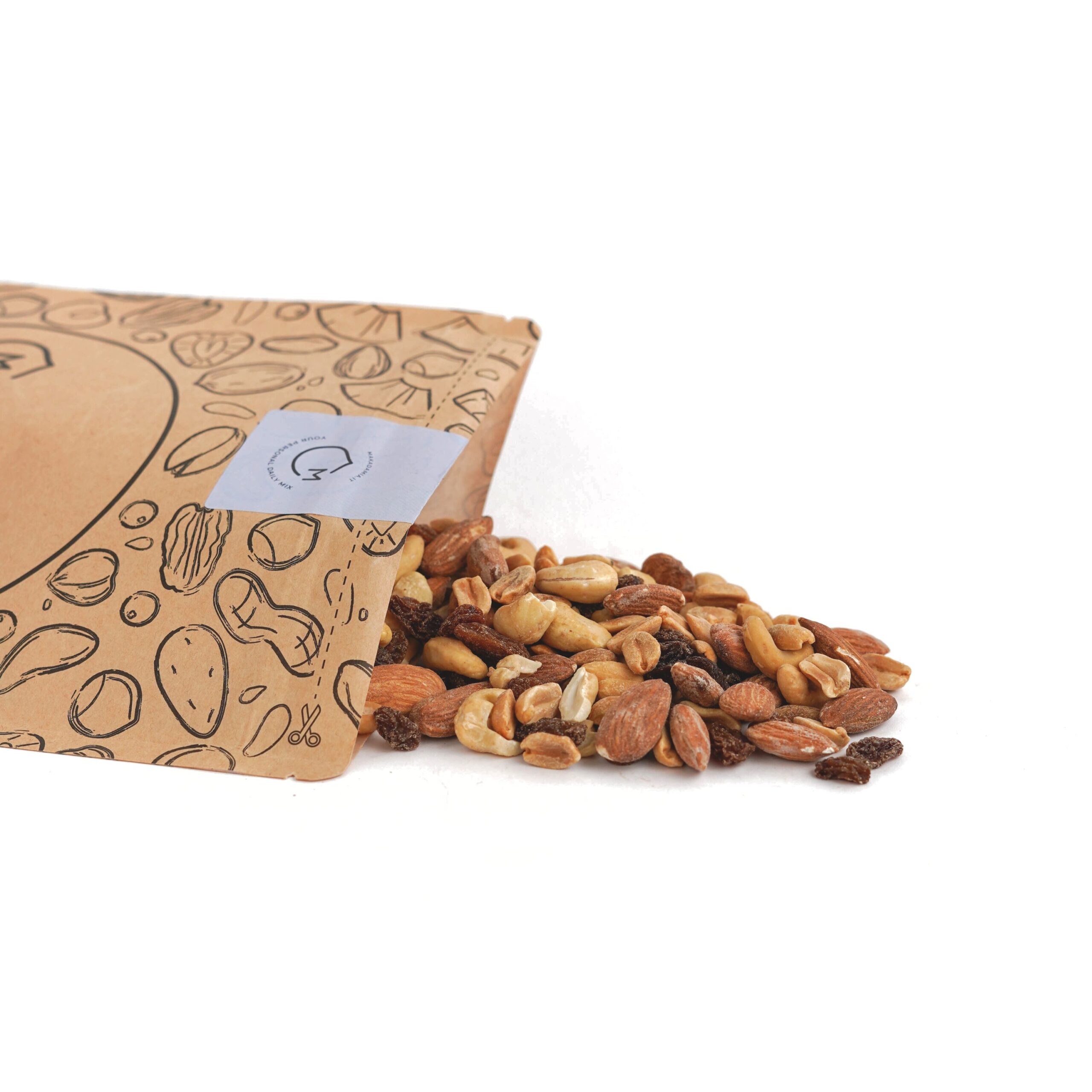 Unsere Verpackungen sind zu 100 % kompostierbar: Wenn du deine Nussmischung aufgegessen hast, kannst du die Verpackung ganz einfach in der Biotonne entsorgen.