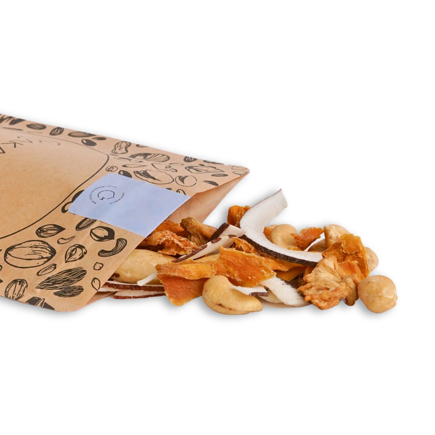 Zutaten: Cashewkerne, getrocknete Ananas, Kokosnuss, getrocknete Mango, Paranüsse