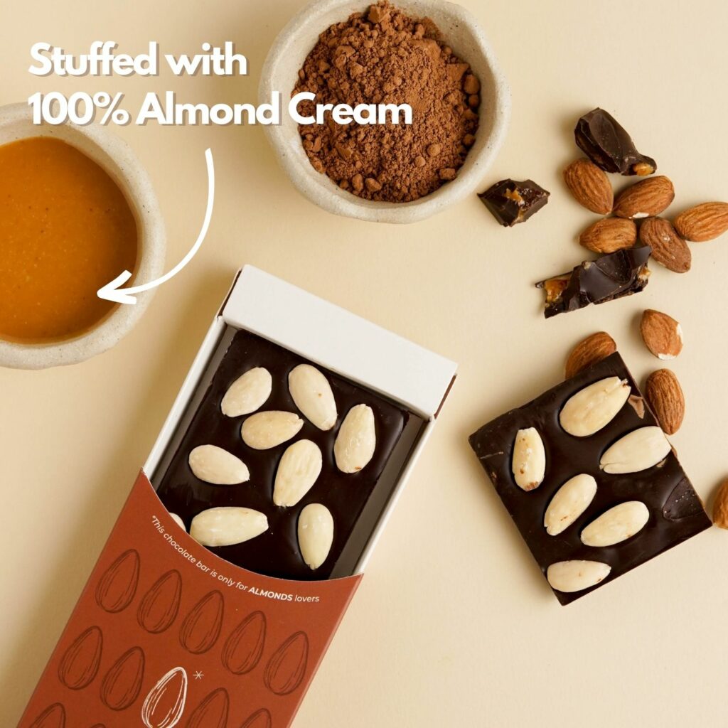 Buy our Chocolate and Almonds Bar online to have an exceptional snack at home or in the office to give your breaks the right dose of good cheer!