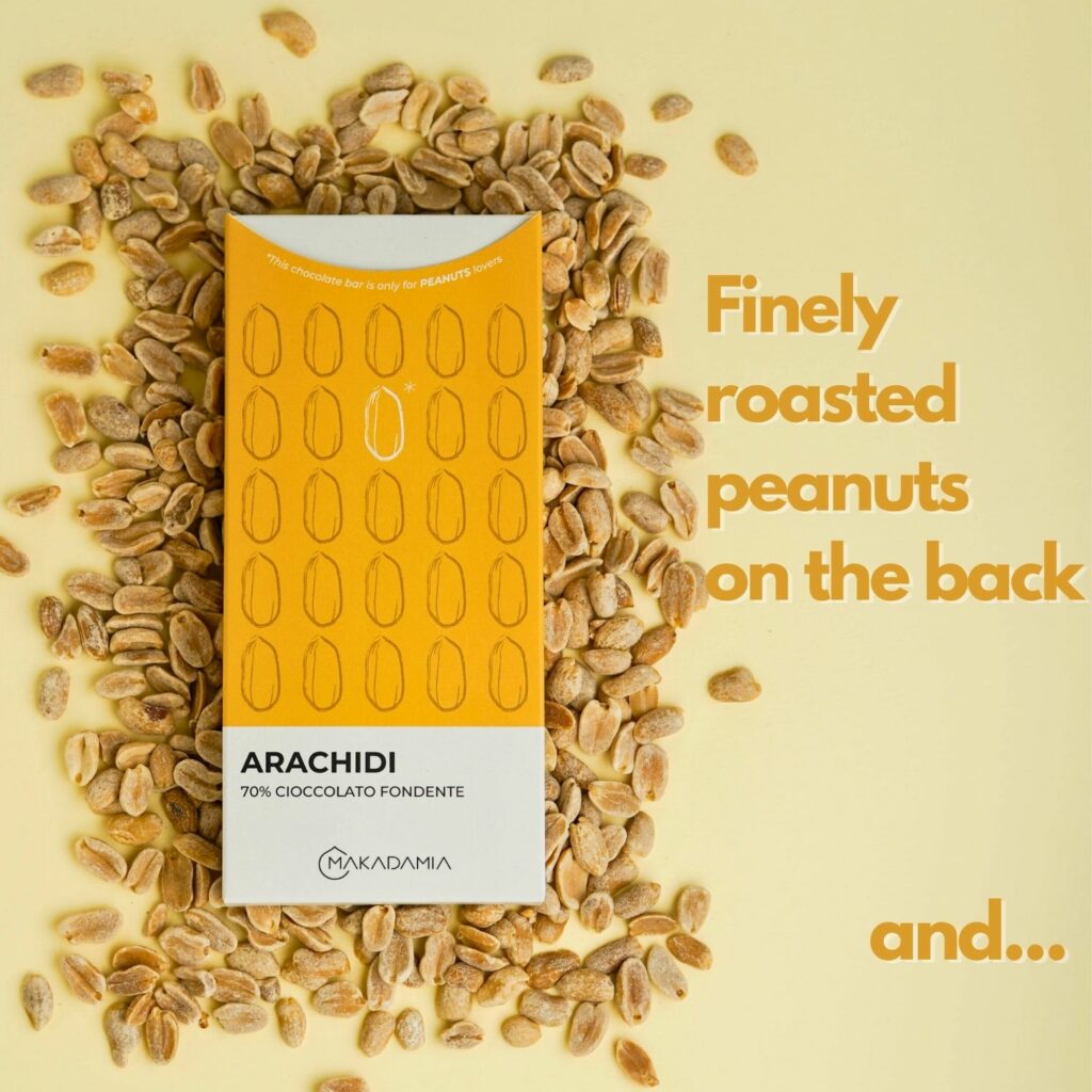 Ingredients: Dark Chocolate 60% (cocoa paste, sugar, low-fat cocoa powder, emulsifier:SOY lectin; natural vanilla flavouring, cocoa: min. 70.5%), PEANUTS 25%, pure PEANUT paste 15%.