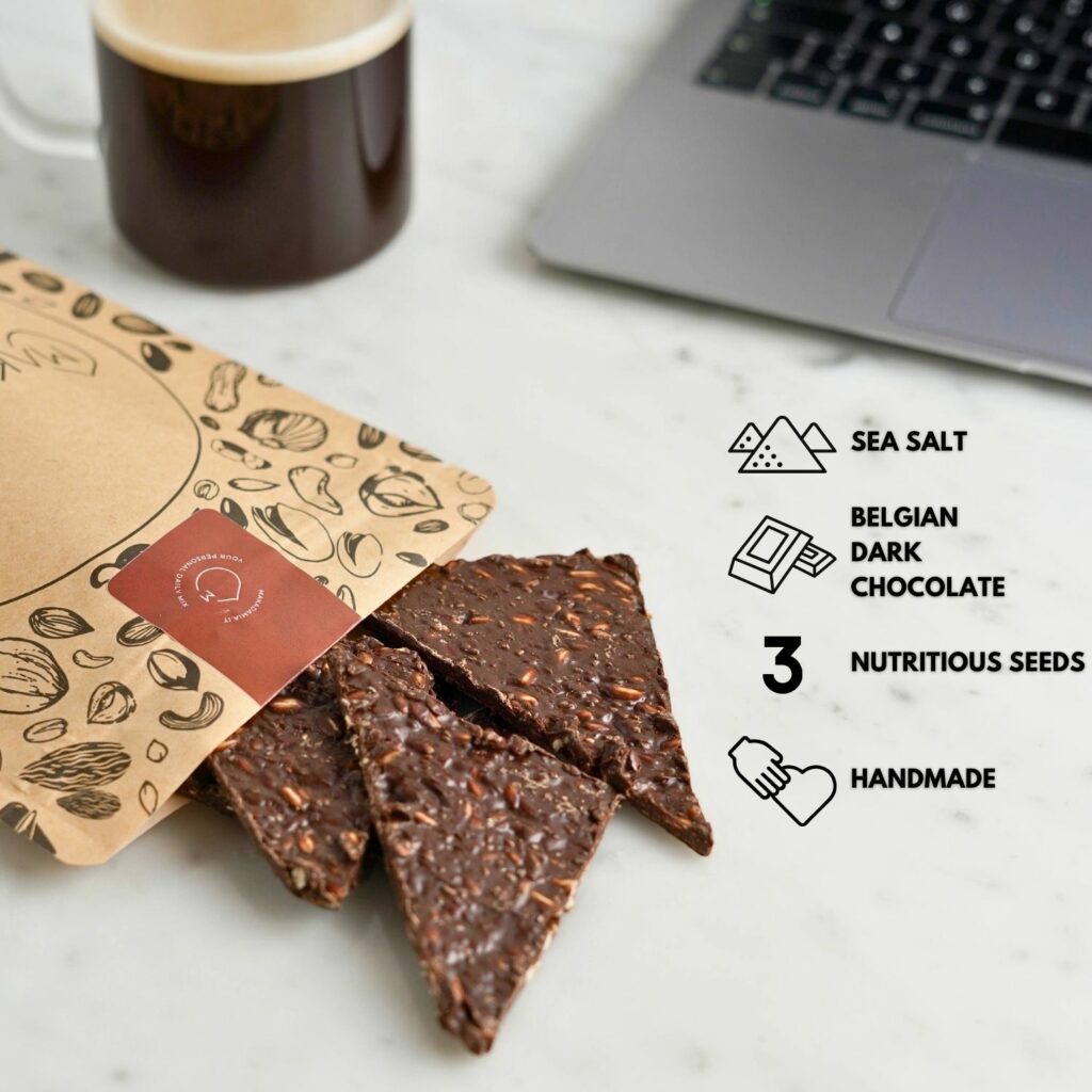 Buy our 60% Dark Chocolate Seed Crackers online to have a healthy and nutritious treat at home or in the office to give your breaks the right dose of good cheer!
