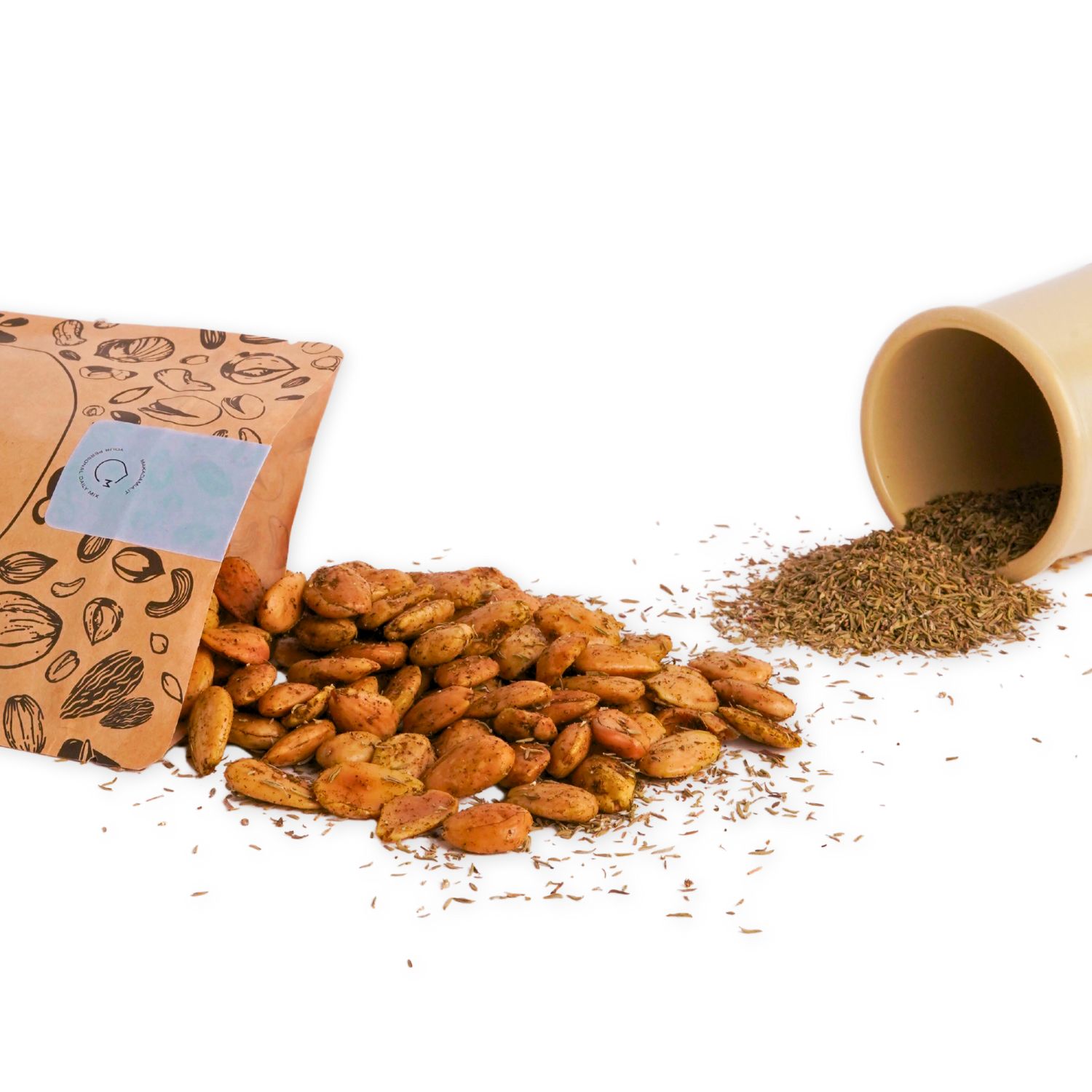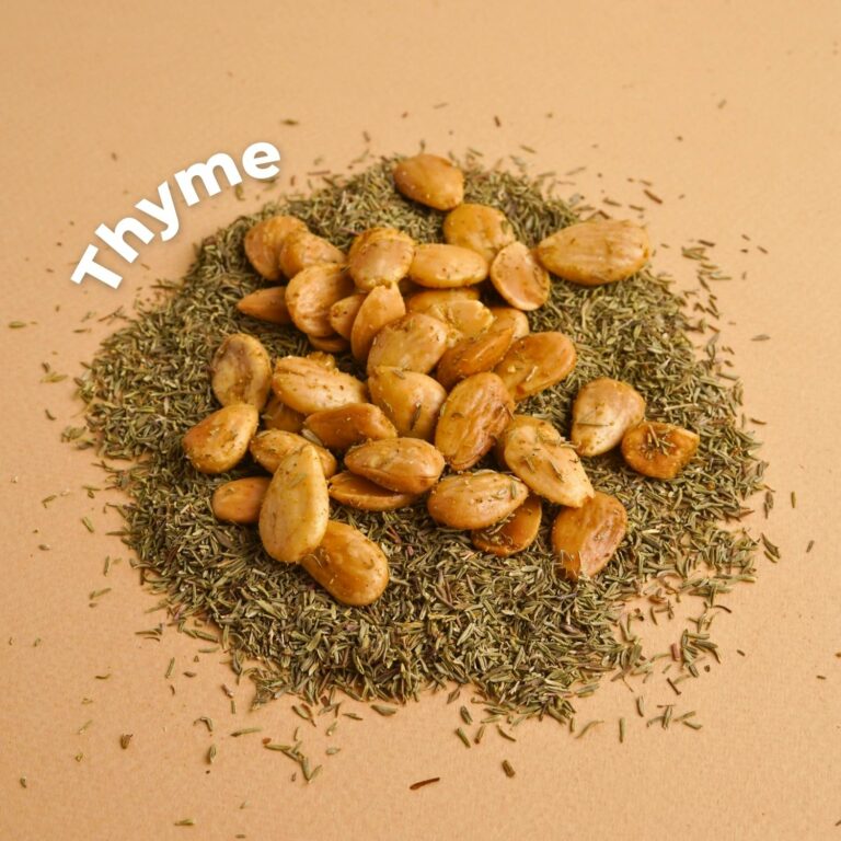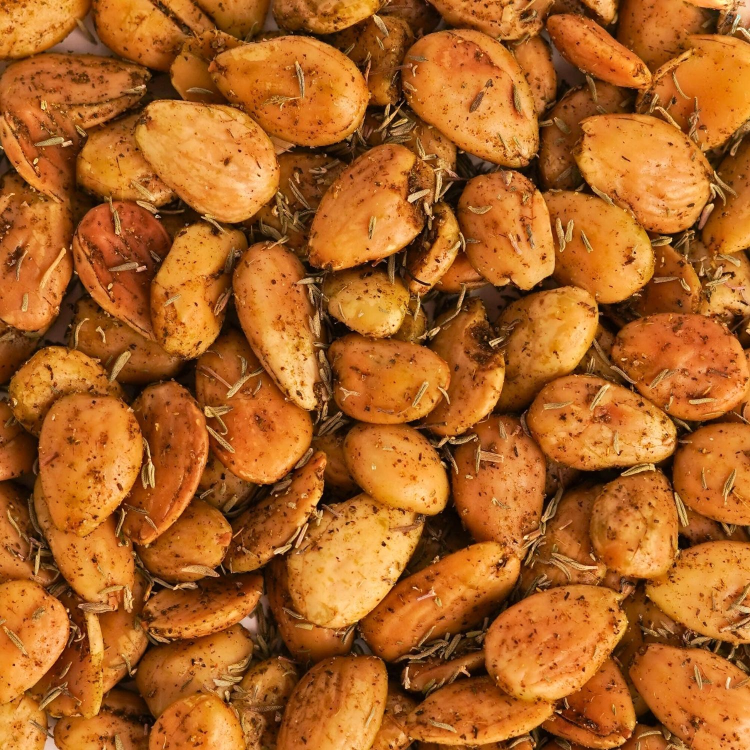 Buy our peeled, roasted and spiced Thyme Almonds online to have a healthy and refined snack in your home or office, perfect for aperitifs or snacks.