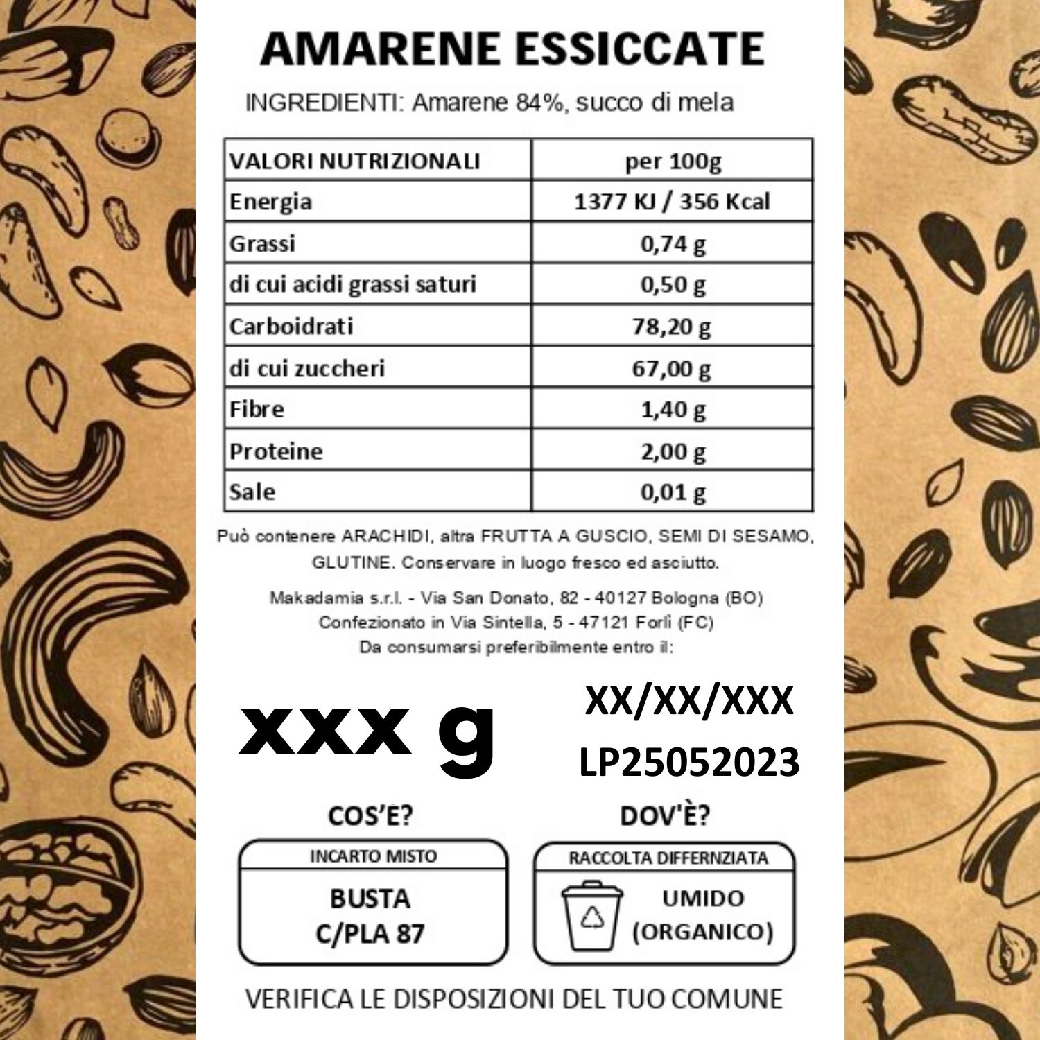 Una volta staccate dal ramo, le amarene vanno purtroppo consumate in pochi giorni perché tendono ad appassire e a degradarsi velocemente. Non temere, attraverso l’essiccazione, Makadamia ti da la possibilità di gustarle tutto l’anno!
