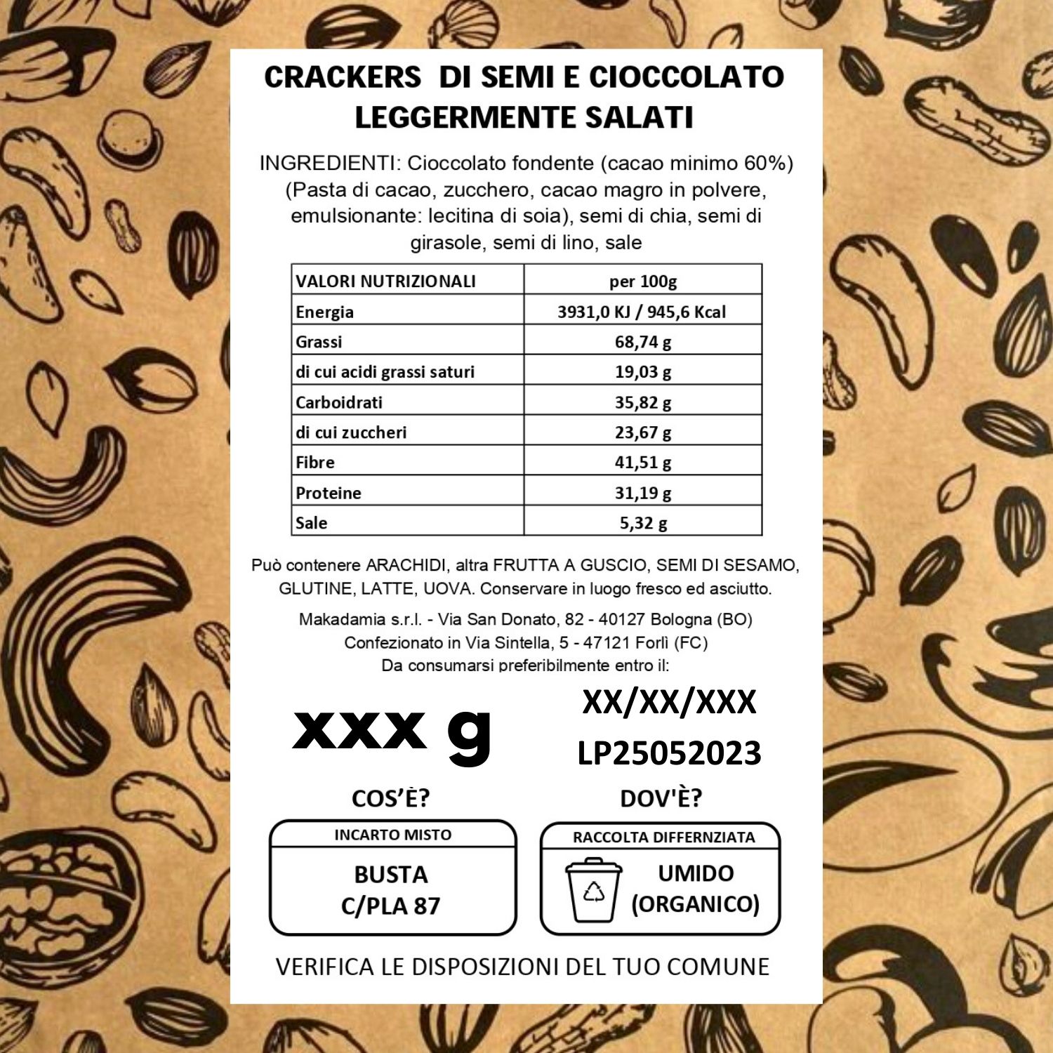 Comodi da portare con te in ufficio o a lavoro. Le nostre pouch richiudibili e compostabili (si, puoi gettarle nell’organico) hanno una zip salvafreschezza che ti permetterà di mantenerli freschi e croccanti.