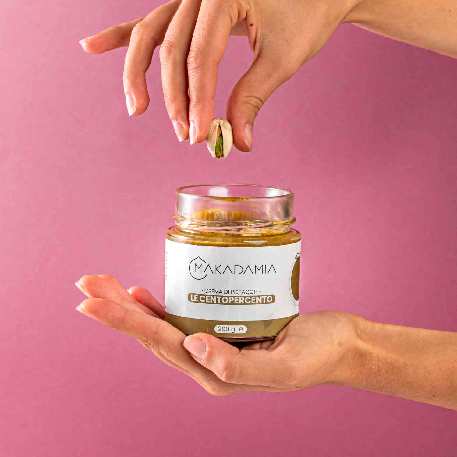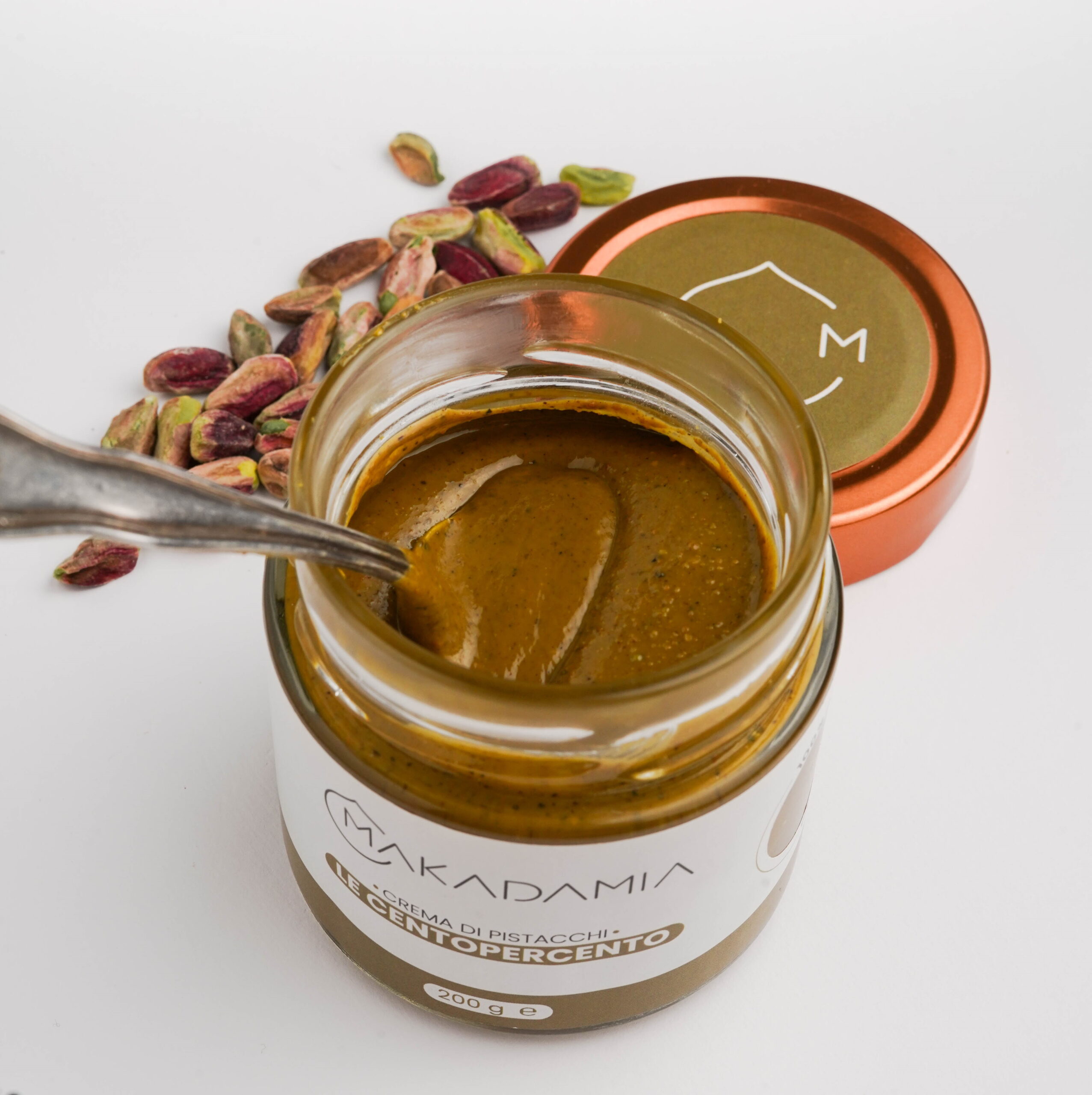 Mescola per bene la crema Centopercento Pistacchi Mediterranei prima di tuffartici dentro… essendo 100% Pistacchio l’olio sale naturalmente in superficie.