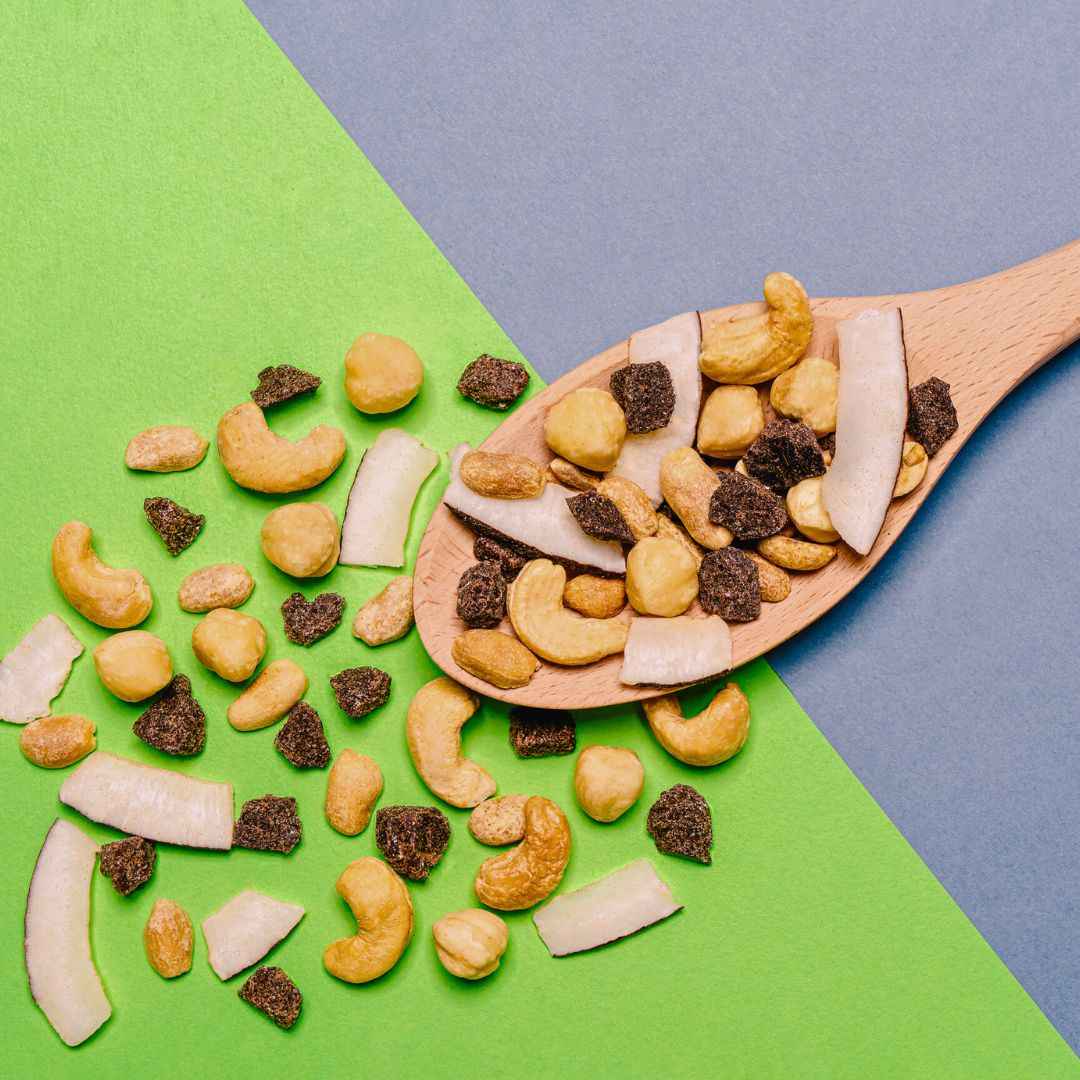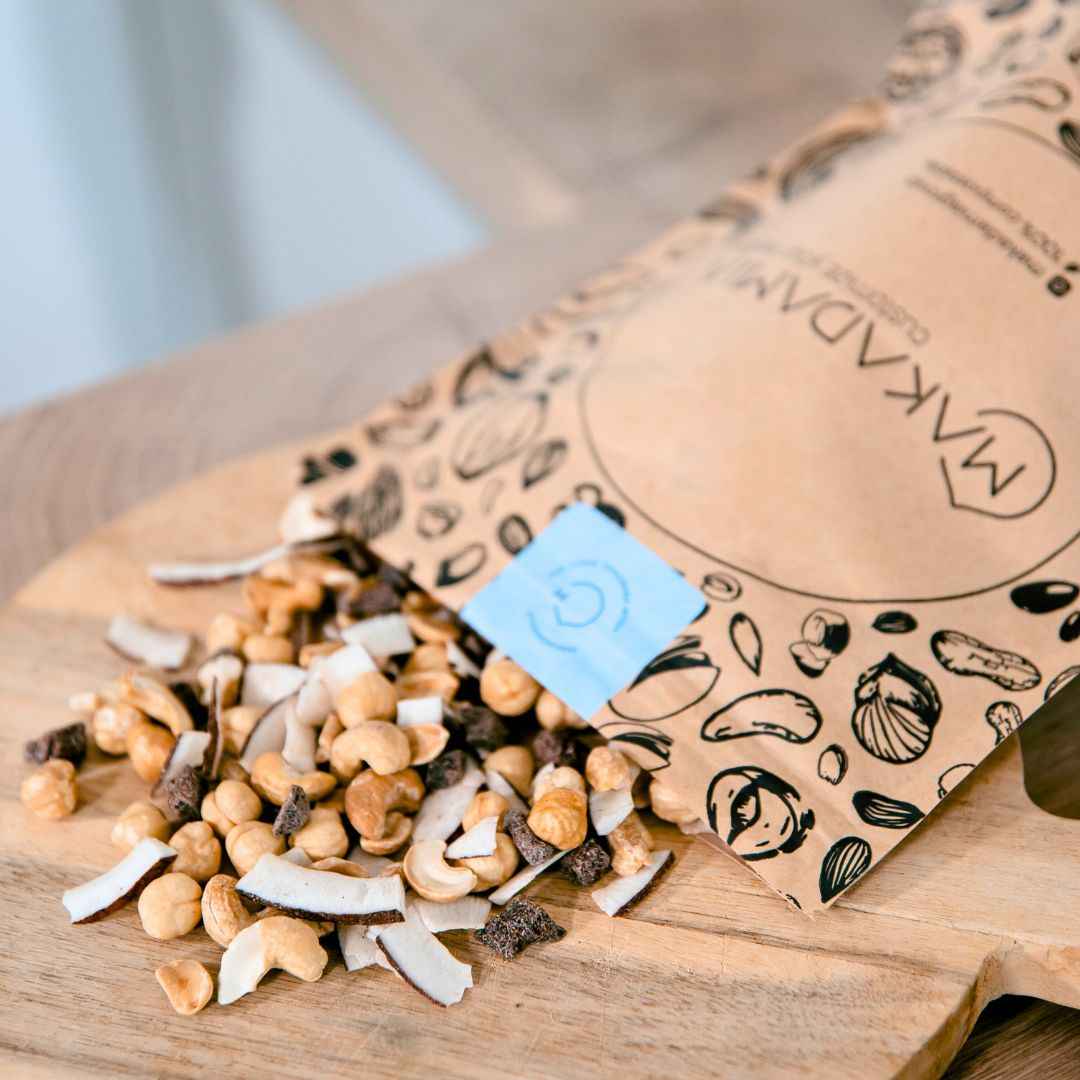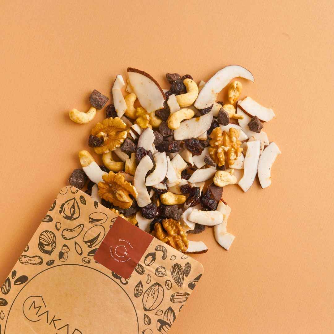 Il cioccolato fondente è un inguaribile seduttore, colpisce con il suo charme a partire dall’olfatto, per esprimersi al suo massimo quando lo gusti. Il nostro è un prodotto artigianale pregiato, proveniente direttamente da Modica, città che di cioccolato ne sa qualcosa. Le Scaglie da “Cioccolato di Modica IGP” Fondenti al 70% rendono questo mix speciale e si combinano alla perfezione con gli altri componenti del gruppo: il Cocco dona un tocco esotico di energia, Anacardi e Noci portano un benefico effetto crunchy ed il Mirtillo contribuisce con una rinfrescante nota dolce e fruttata. Con l’inconfondibile gusto del cioccolato questo mix si farà valere a colazione o come spuntino per allietare pause lavoro, momenti di relax e post workout.