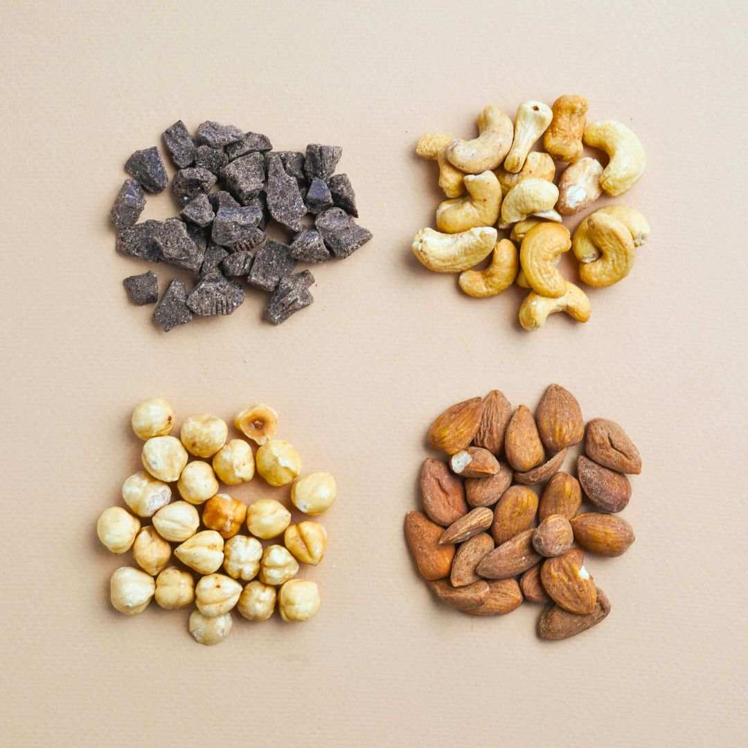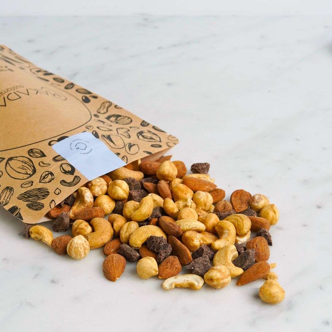 Il cioccolato fondente è un inguaribile seduttore, colpisce con il suo charme a partire dall’olfatto, per esprimersi al suo massimo quando lo gusti. Il nostro è un prodotto artigianale pregiato, proveniente direttamente da Modica, città che di cioccolato ne sa qualcosa. Le Scaglie da “Cioccolato di Modica IGP” Fondenti al 70% rendono questo mix speciale e si combinano alla perfezione con gli altri componenti del gruppo: Mandorle e Nocciole Pelate Tostate sono un duo imbattibile che porta benessere, salute e bellezza, gli Anacardi Tostati aggiungono un’infusione di buonumore. Con l’inconfondibile gusto del cioccolato questo mix si farà valere a colazione o come spuntino per allietare pause lavoro, momenti di relax e post workout.