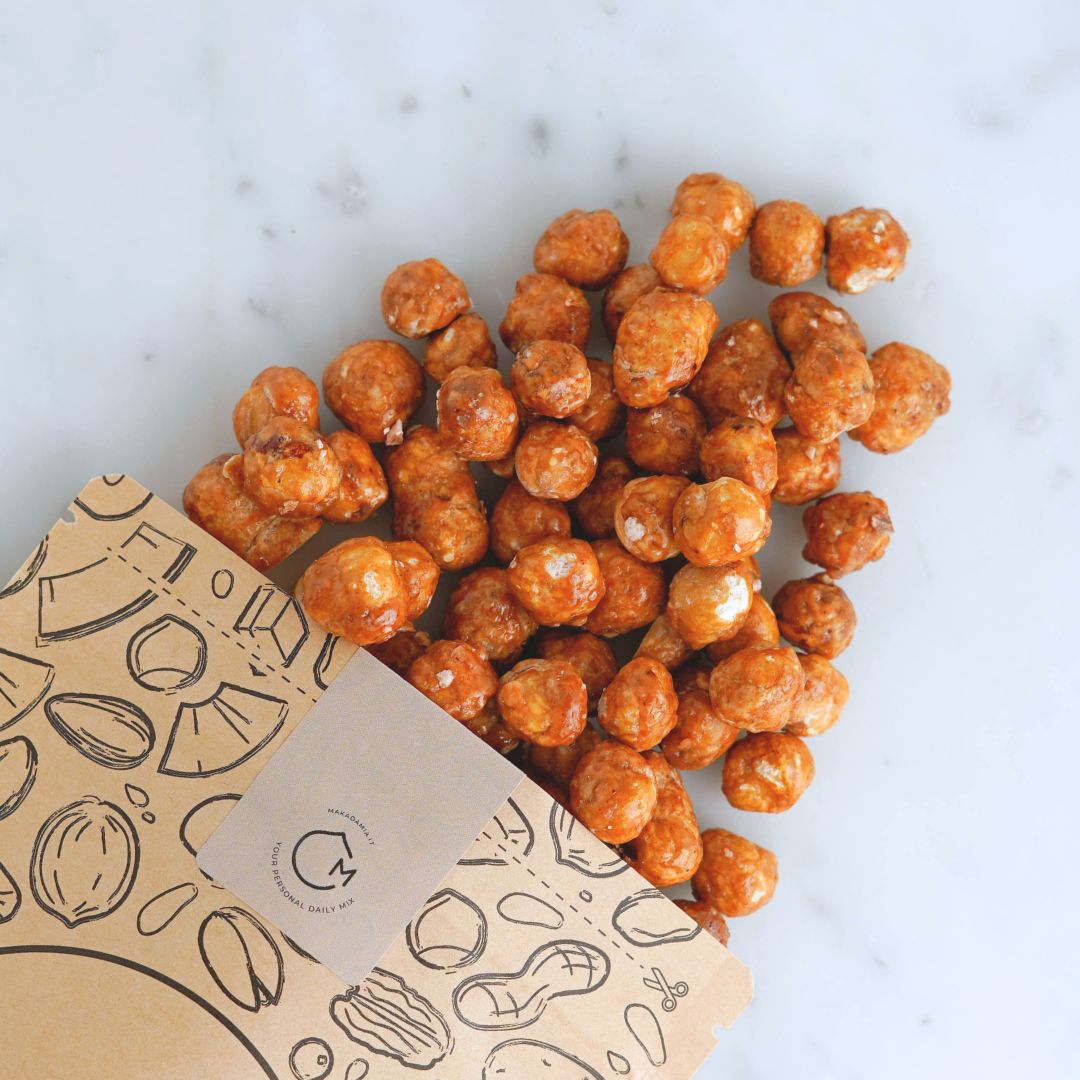 Noi di Makadamia però avevamo un obiettivo: ottenere uno strato sottile di pralinatura, con una quantità di zucchero sufficiente a garantire una caramellizzazione perfetta, ma leggera abbastanza da non coprire il sapore autentico della nostra frutta secca.