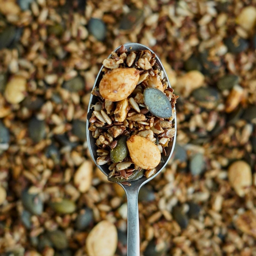 La Non Granola non è solo un piacere per il palato: è anche un’ottima fonte di energia e nutrimento. I semi di zucca sono ricchi di proteine e contengono triptofano, che aiuta ad attenuare i sintomi dell’insonnia, i semi di girasole sono ricchi di omega 3 e 6, mentre i semi di lino hanno un elevato contenuto di fibre e calcio e sono ideali per integrare gli acidi grassi essenziali.