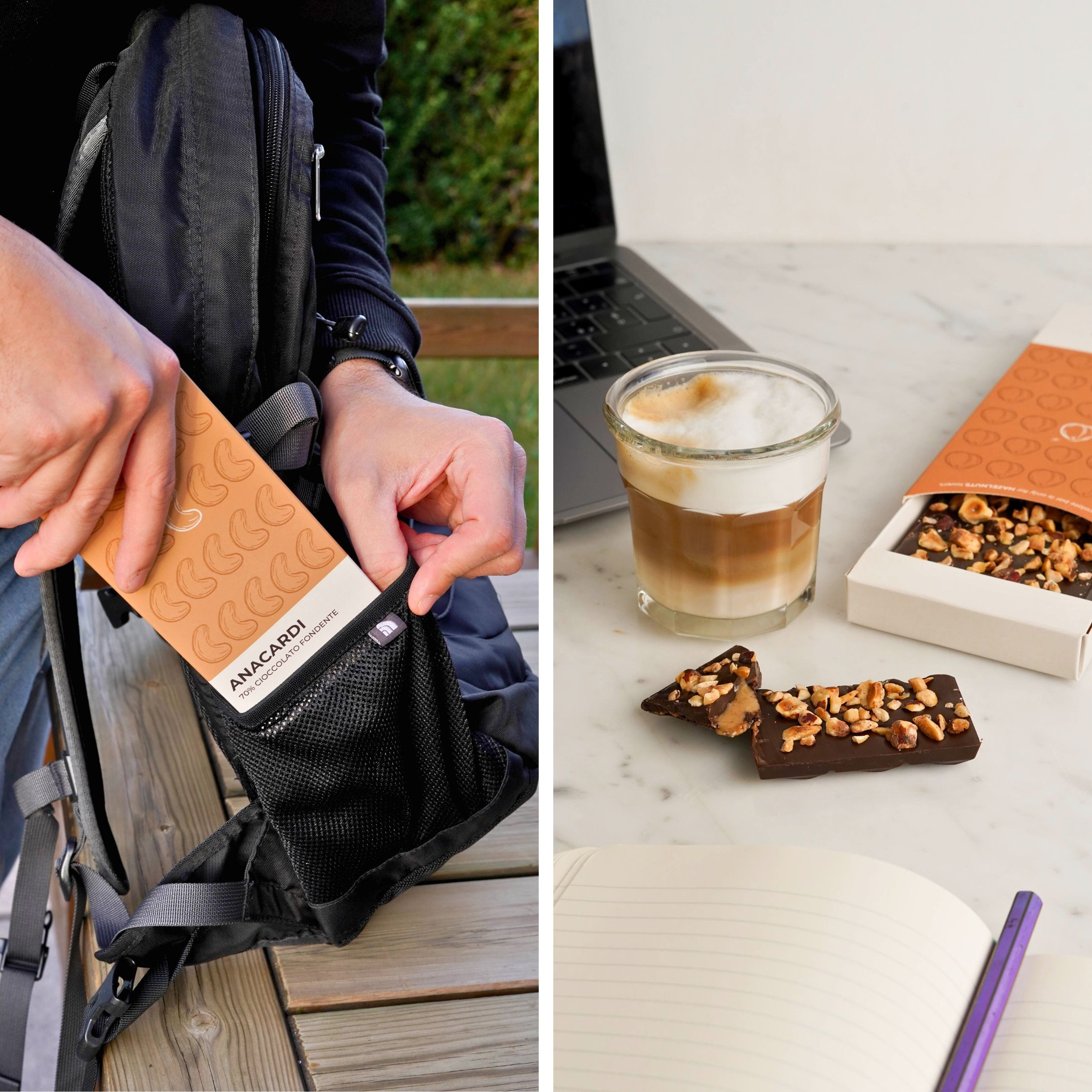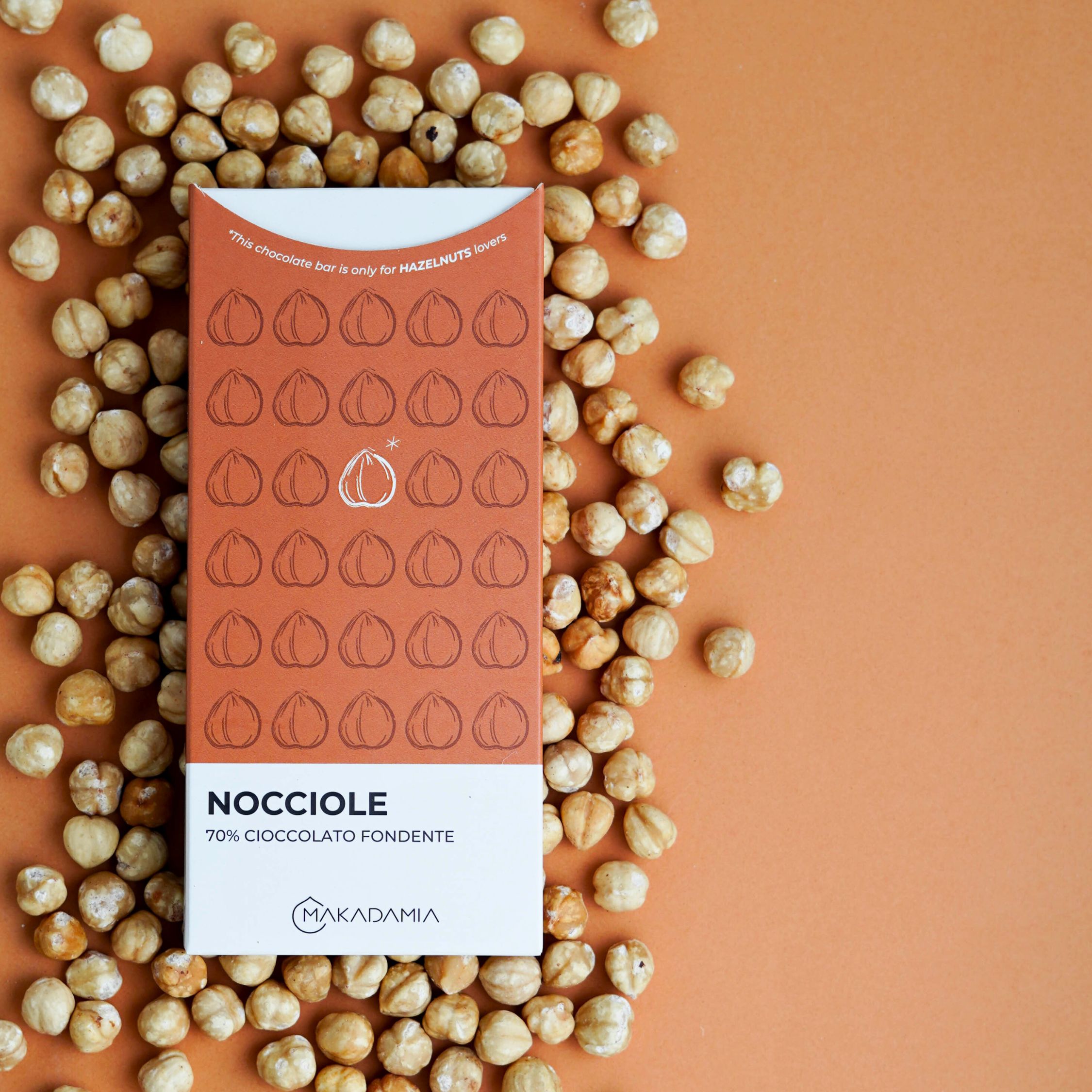 Abbiamo scelto attentamente gli ingredienti che compongono questa tavoletta: dal Cacao Belga Callebaut, alle nocciole finemente tostate makadamia e, infine, la crema 100% nocciole che da esse ne deriva e che si nasconde all’interno di ogni cubetto. Insomma, esattamente la stessa frutta secca che puoi acquistare sul nostro shop.